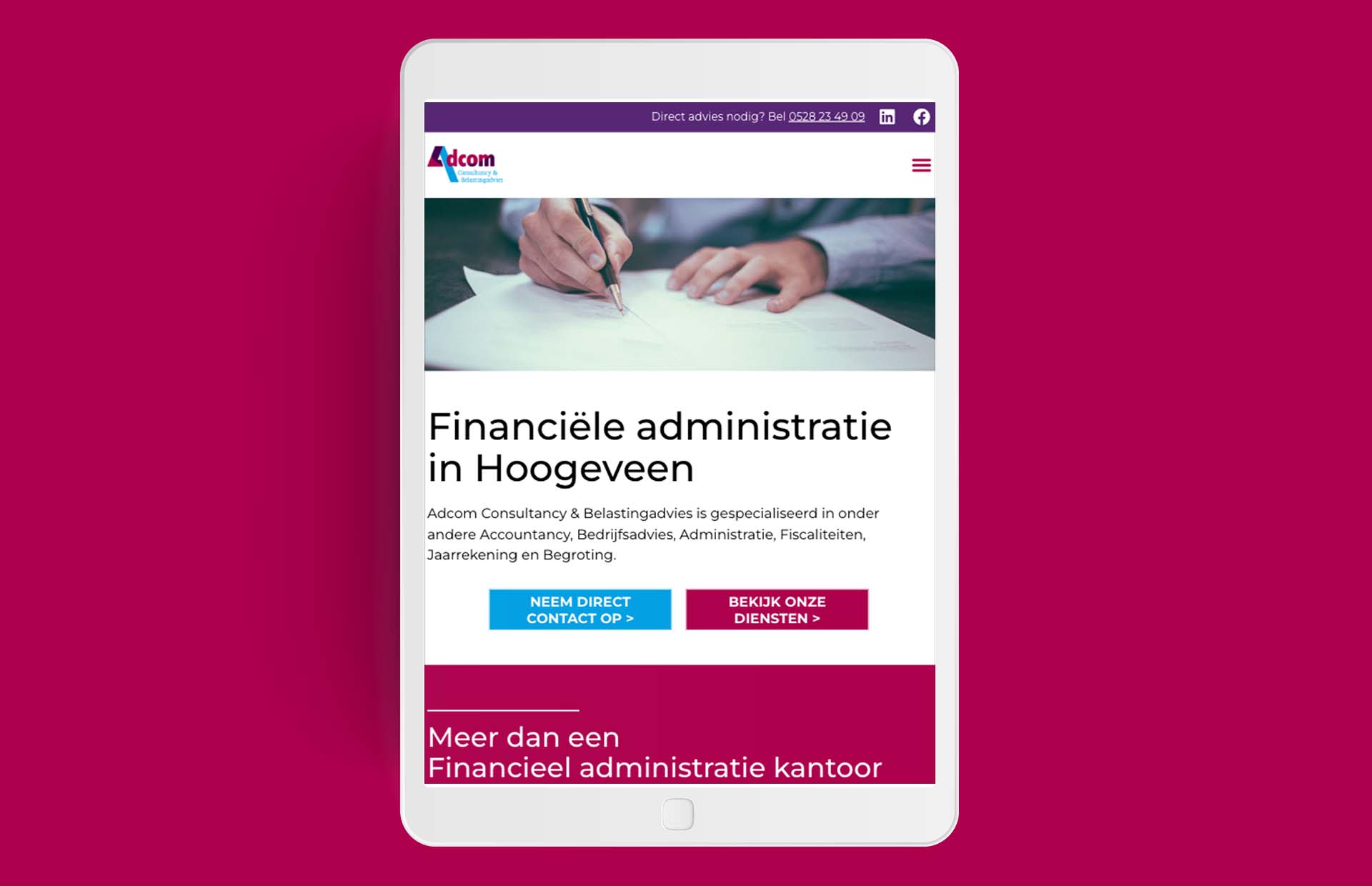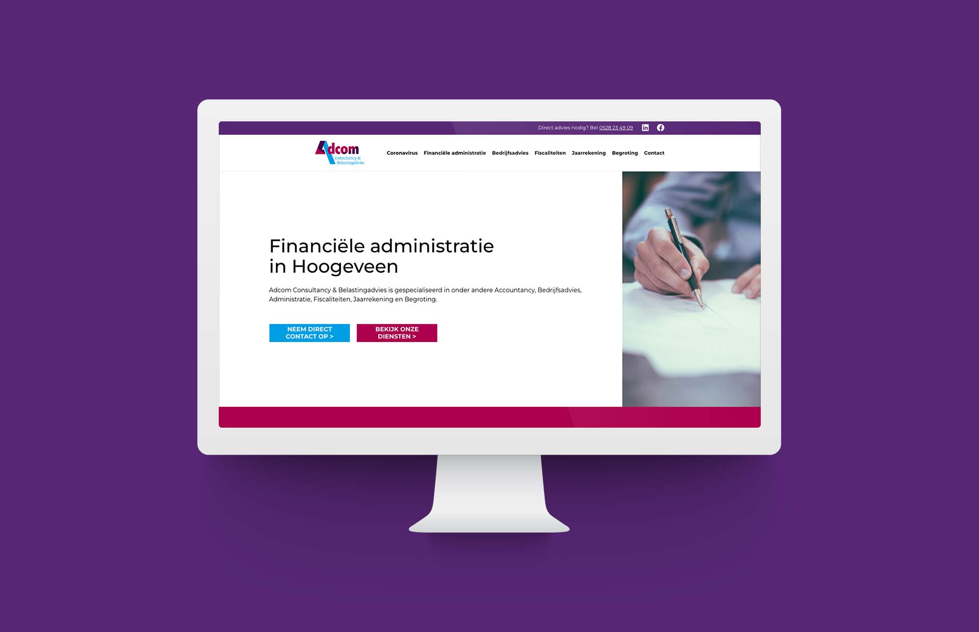 Voor Adcom Consultancy & Belastingadvies mochten wij een nieuwe website realiseren. Zij zijn gespecialiseerd in onder andere Accountancy, Bedrijfsadvies, Administratie, Fiscaliteiten, Jaarrekening en Begrotingen. Wij zijn enorm blij dat wij hebben mogen helpen.