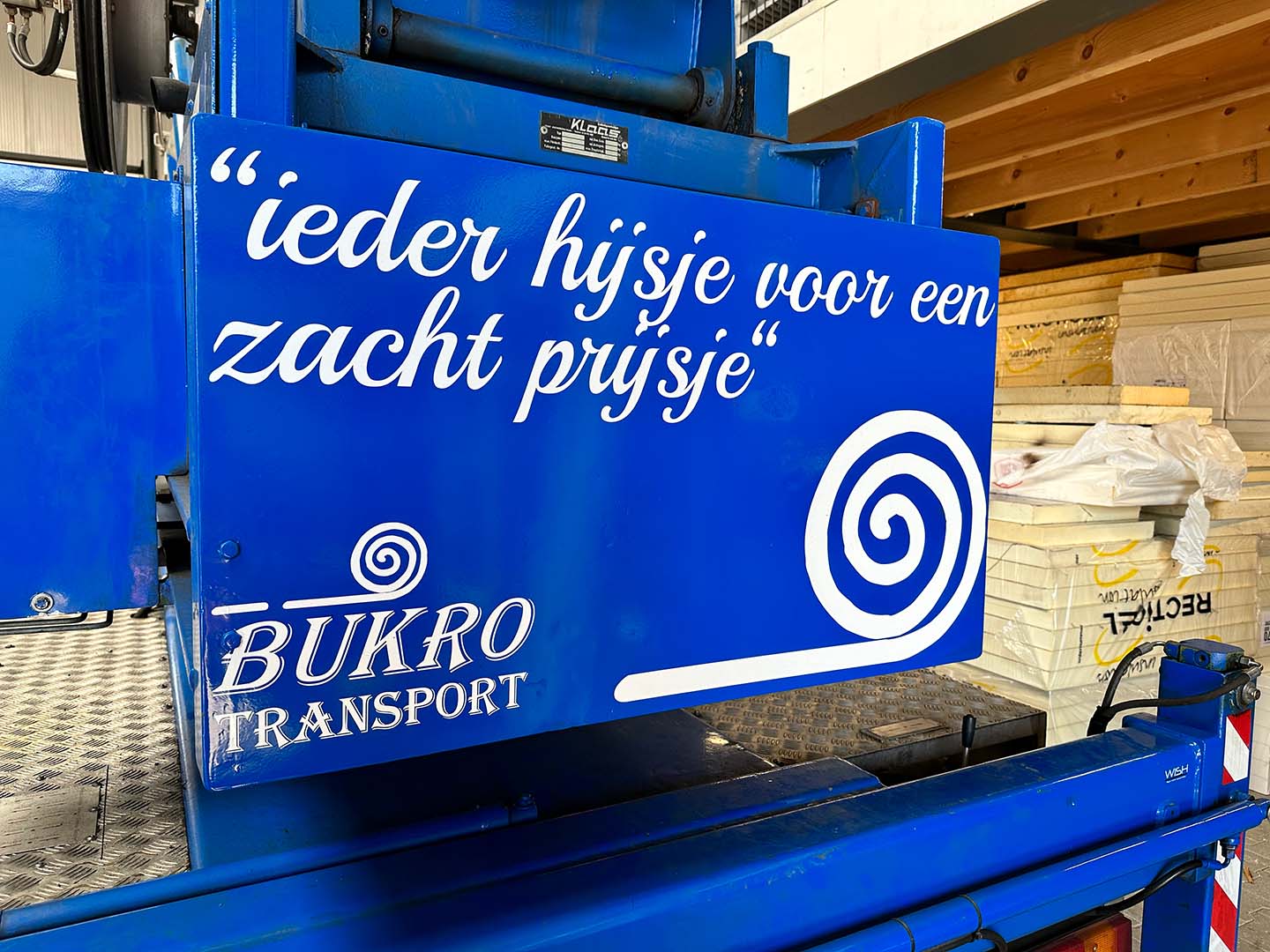 Bestickering is een uitstekende manier om reclame te maken voor een bedrijf, zeker voor transportbedrijven als Bukro Transport. Met een goed ontworpen sticker kun jij jouw voertuigen veranderen in rollende billboards die jouw diensten kunnen promoten en de aandacht van potentiële klanten kunnen trekken, waar je ook bent. Dat is dus precies waar wij ons bezig hebben mogen houden.